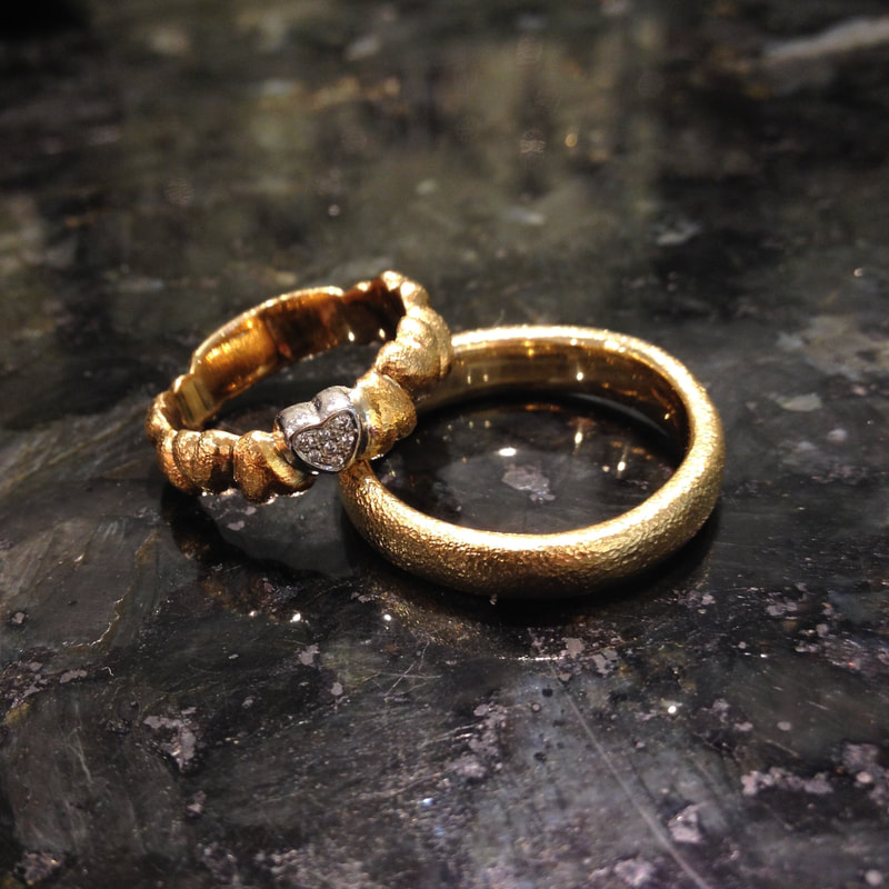 Har I helt specifikke ønsker til jeres ringe, kan vi også tilbyde at lave jeres helt egne og unikke ringe, eventuelt af jeres eget guld eller arveguld